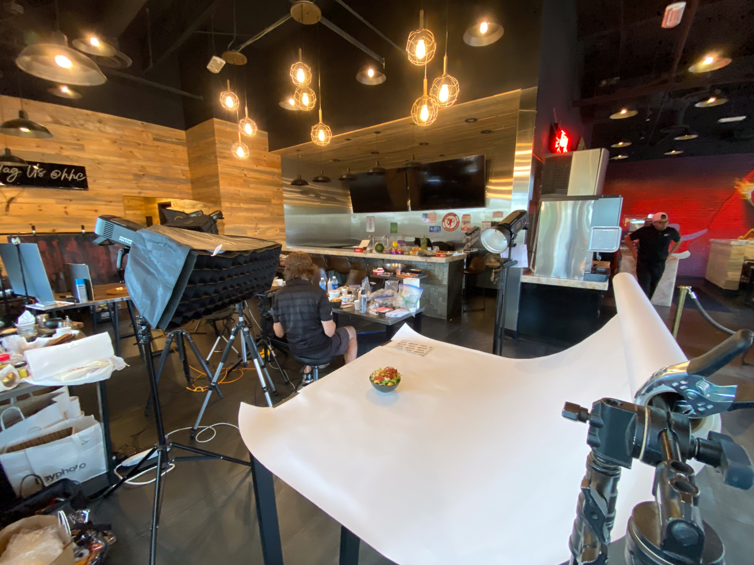 We set up in an extended section of the dining room, giving us enough space to construct a tabletop set while still allowing the restaurant to operate normally. Shoot days were intentionally scheduled during slower periods so the kitchen and staff could support production without disrupting service.